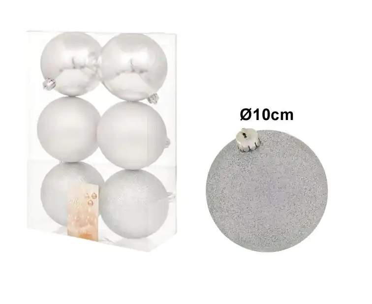ADORNO DE NAVIDAD BOLA PLATEADA X 6 PIEZAS AR3-10006AMB-S 10CM 717571