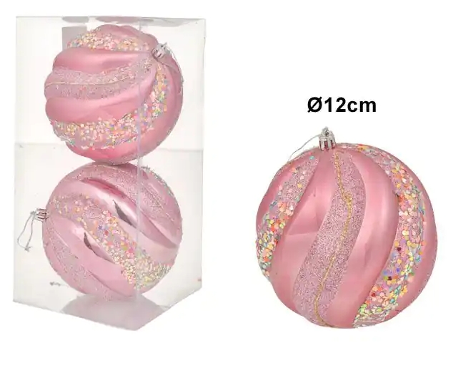 ADORNO DE NAVIDAD BOLA ROSADA X 2 PIEZAS ES27314 2X12CM 822779