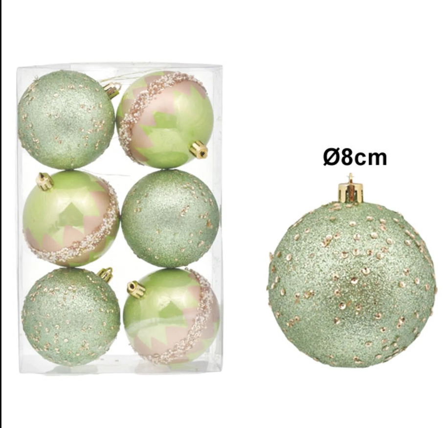 ADORNO DE NAVIDAD BOLA VERDE X 6 PIEZAS ES26669 8X6CM 915383