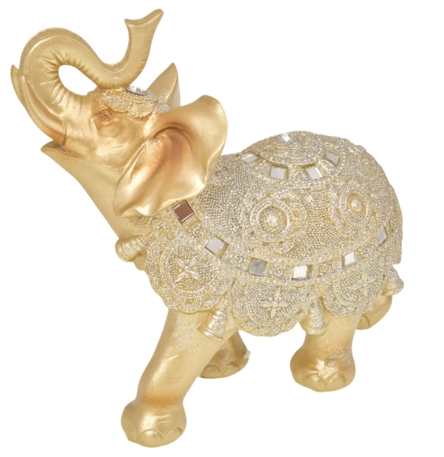 ADORNO RESINA ELEFANTE DORADO ES27692 22CM X 29CM 404210