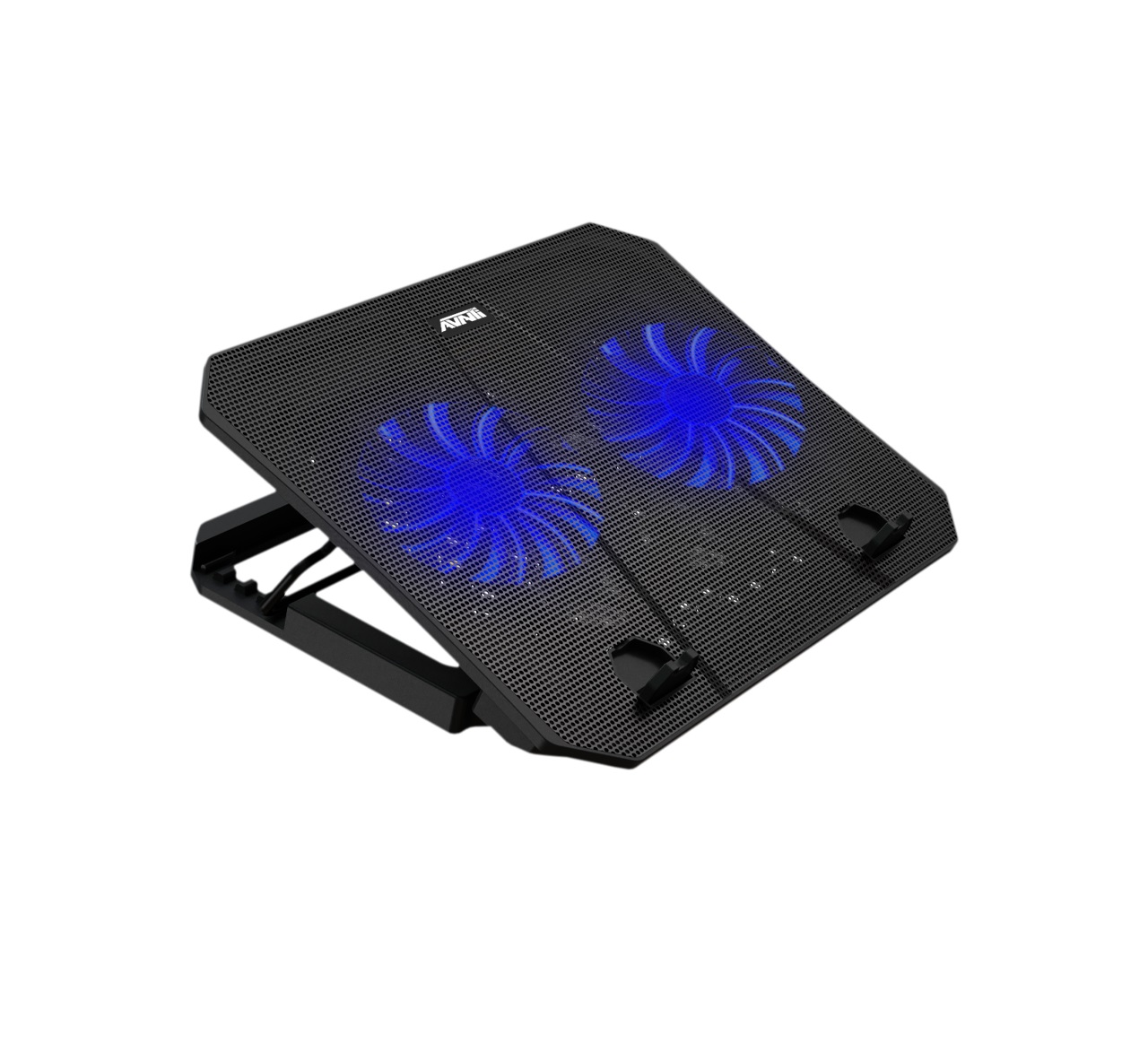 – Base de enfriamiento para notebook de hasta 16" con alimentación USB 2.0.- Suministra un flujo de aire continuo para evitar que tu dispositivo se recaliente.- Diseño delgado ideal para uso en el hogar y la oficina.- Superficie de malla metálica para excelente flujo de aire.- Efectos de iluminación: LED azul.- Material: Plástico ABS + superficie de malla metálica.- Color: Negro.- Cantidad de ventiladores: 2.- Velocidad del ventilador: 800-1200 RPM.- Flujo de aire: 38 CFM.- Altura ajustable: 5 niveles.- Puertos: 2 USB 2.0.- Dimensiones:120*120*20 mm.