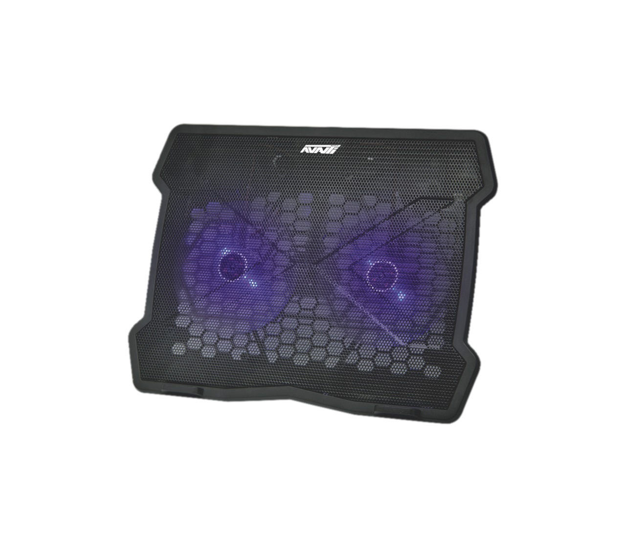 Base de enfriamiento para notebook de hasta 15.6" con alimentación USB 2.0.- Suministra un flujo de aire continuo para evitar que tu dispositivo se recaliente.- Diseño delgado ideal para uso en el hogar y la oficina.- Entrada DC: USB 5V.- Efectos de iluminación: LED azul.- Material: Plástico ABS + superficie de malla metálica.- Color: Negro.- Cantidad de ventiladores: 2.- Velocidad del ventilador: 1000±10%RPM.- Nivel de ruido: 17-26dBA.- Flujo de aire: 38 CFM.- Altura ajustable: 2 niveles.- Puertos: 2 USB 2.0.- Dimensiones: 125*125*15mm.