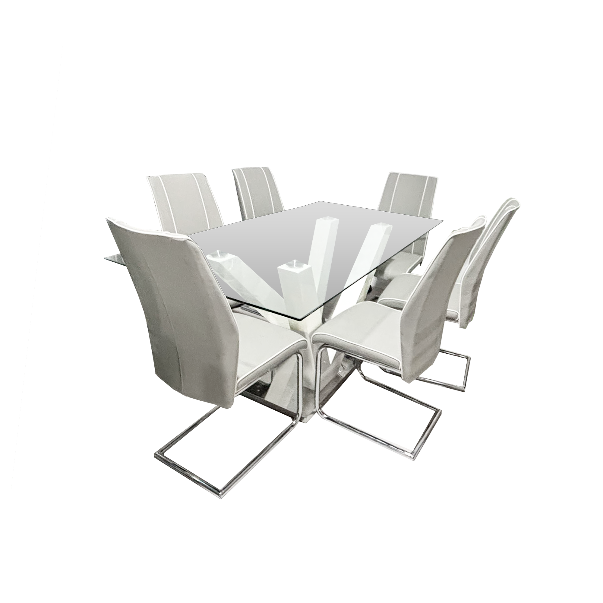 COMBO JUEGO DE COMEDOR KANNA – MESA DE VIDRIO 6 SILLAS KANNA