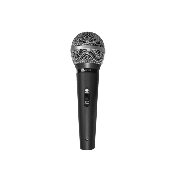 El ES-48XLR es un micrófono alámbrico dinámico de la marca England Sound, diseñado con un patrón polar cardioide para captar el sonido frontalmente y rechazar el ruido lateral, ideal para voces en escenarios, conferencias y karaoke, conectándose a través de un cable XLR a consolas o interfaces de audio, y ofreciendo un cuerpo metálico y un buen rendimiento a un precio accesible• Tipo de transductor: Dinámico• Patrón polar: Cardioide• Rango de frecuencia: 50 Hz ? 16,000 Hz• Sensibilidad: 73dB ± 3dB• Impedancia: 600 O• Nivel de presión sonora máximo (Max SPL): No especificado• Conectividad: Cable XLR• Tipo de alimentación: No requiere (dinámico)• Interruptor de encendido/apagado: No especificado• Material de construcción: Rejilla metálica, cuerpo de zinc