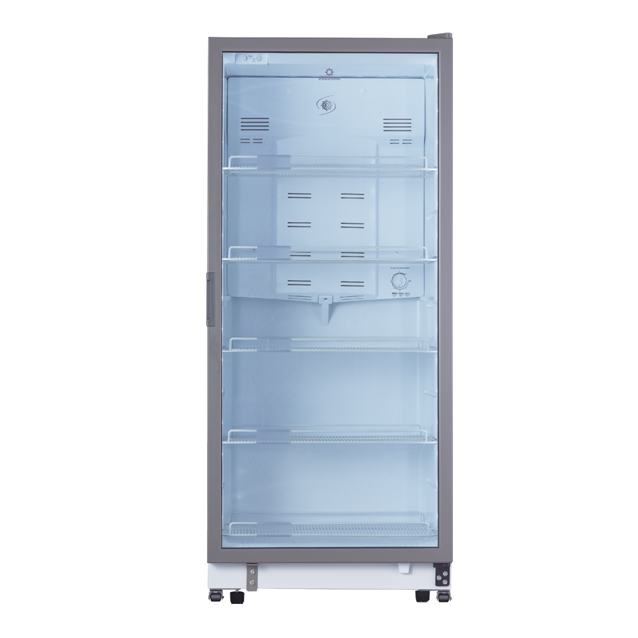 Dimensiones• Alto: 169 cm. Ancho: 73 cm. Prof.: 68 cm. Capacidad• Botellas de 330 ml: 250 unidades• Botellas de 600 ml: 128 unidades• Latas: 468 unidadesInformación general• 380 Litros• Producto Recomendado para uso comercial• Sistema No Frost• Mayor capacidad de almacenamiento y exhibición Zona Exterior• Disponible en blanco con acabados grises• Puerta con doble vidrio templado y película Low-E• Manija Incorporada• Ruedas de alta resistencia• NiveladoresZona Interior• Control de Temperatura• Desempañador• Iluminación Led• Interior metálico blanco• Parrillas anticorrosivas súper reforzadas regulables• Preciador